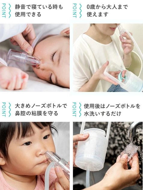 口で吸うタイプじゃなくて、真空の力 で鼻水をスッキリ取る!