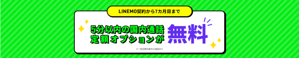 LINEMOが今やってるキャンペーン、通話オプションが7カ月も無料になるんですよ。