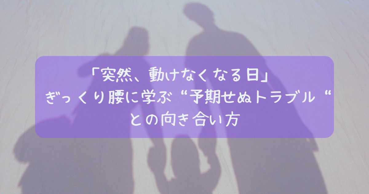 「明日も普通に動ける」と思うのは、実は 一番危険なこと かもしれないから。